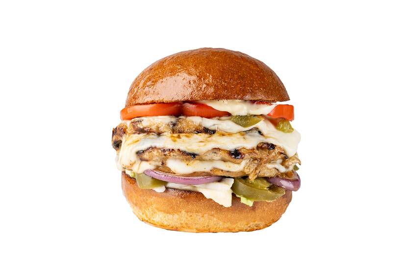 Соковитий бургер на бріоші з ніжним часниковим соусом, хрусткою пекинською капустою та підгрильованою червоною цибулею. Три курячі котлети, тягуча моцарела і солодкий болгарський перець створюють глибокий смак, який підкреслює пекучий халапеньо.